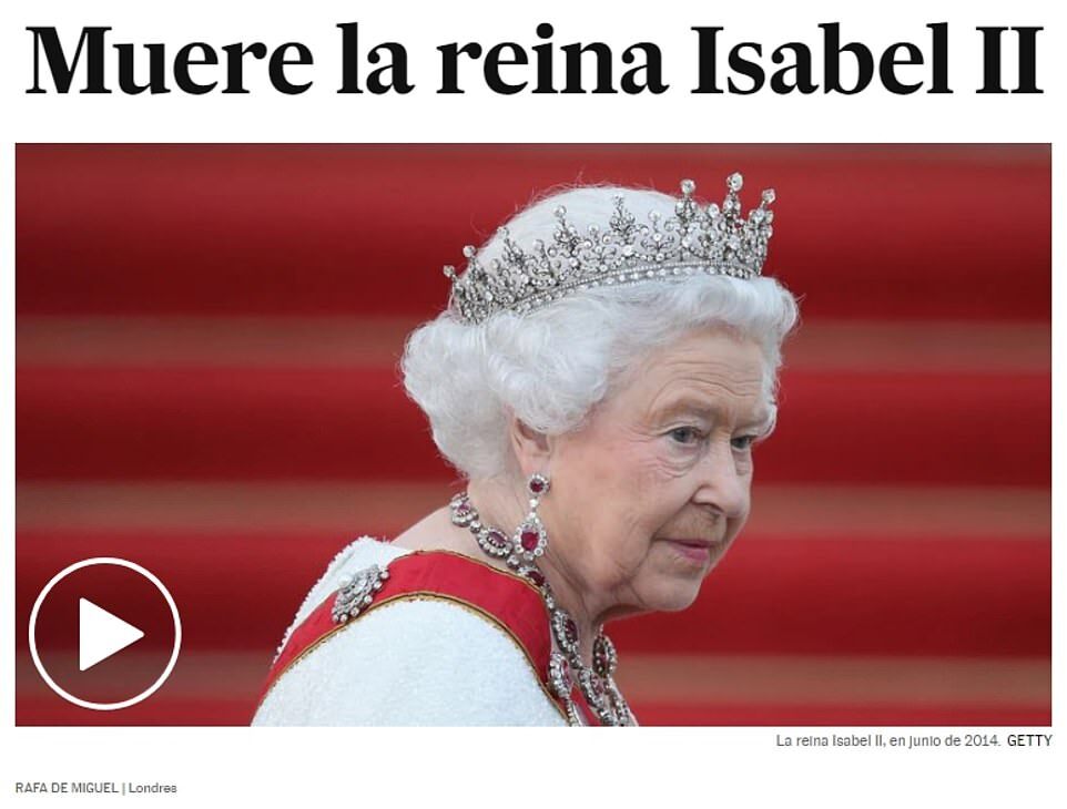 Spain's El País headlined their story: Queen Elizabeth II of England, leader of the European monarchy, dies