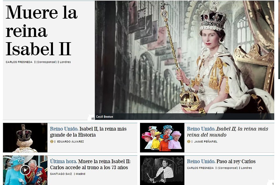 El Mundo, the second largest printed daily newspaper in Spain, announced her death alongside a June 1953 photograph by Cecil Beaton titled Queen Elizabeth II in Coronation Robes. Mr Beaton's work is featured in the Victoria and Albert Museum.