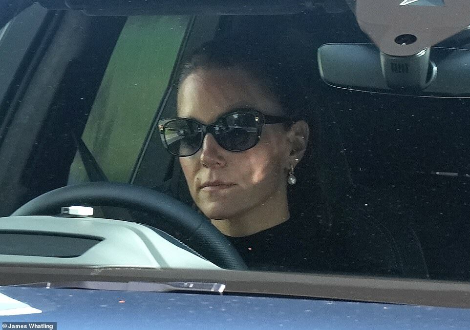 Catherine, Duchess Of Cambridge, leaves Windsor Castle as she stayed behind in England where her three children are having their first day at school