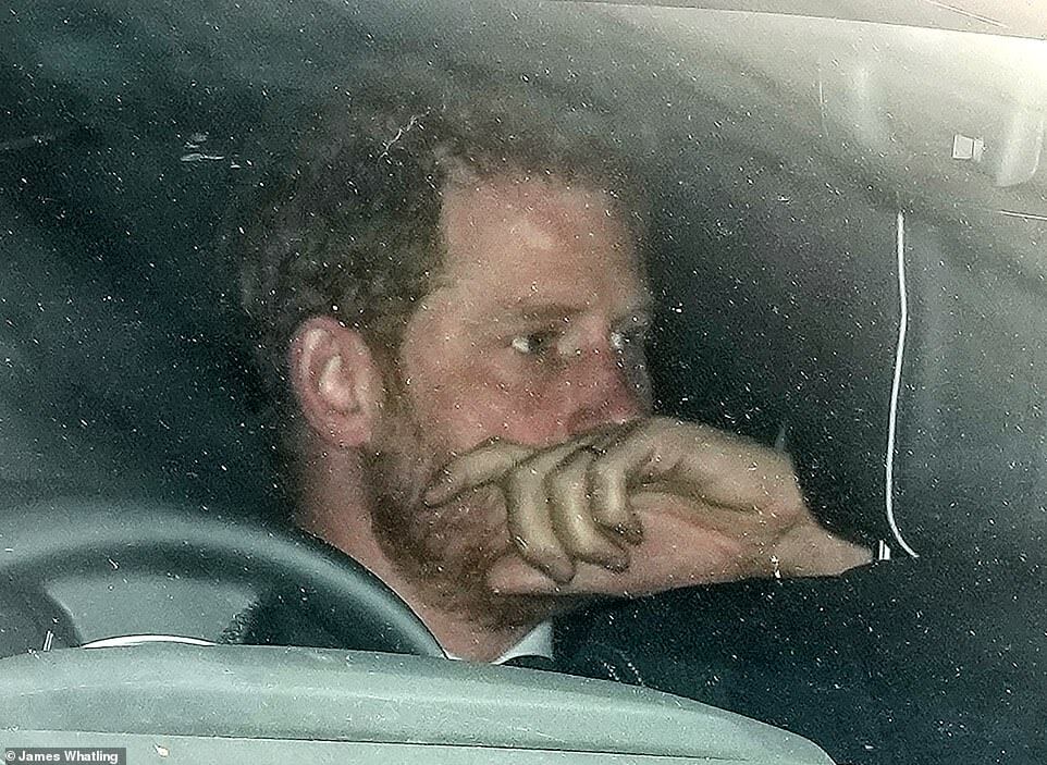 The Duke of Sussex had grief etched on his face as he was swept into the grounds of Windsor Castle this afternoon after losing a race against time to get to his grandmother's bedside before she died yesterday.