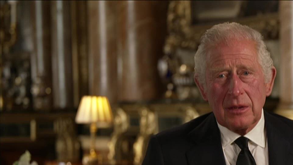 It comes as Charles extended an olive branch to Prince Harry and Meghan Markle in his first address to Britain and the world as monarch yesterday.