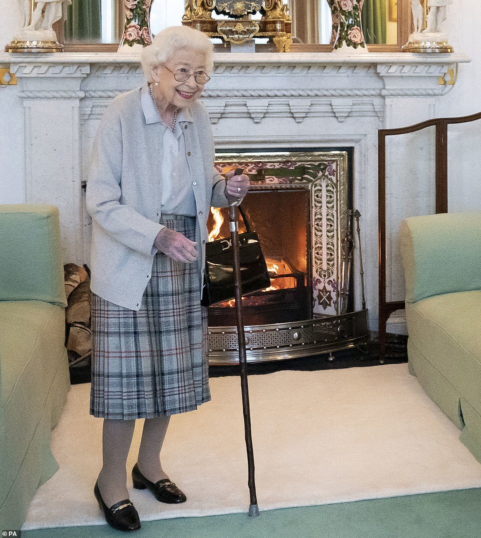 The Queen waits in the Drawing Room before receiving Liz Truss for an audience at Balmoral, Scotland on Tuesday. Today she is under the supervision of doctors amid concerns about her health