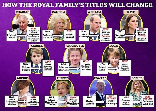 Meanwhile, the change of monarch has trigged other changes of titles around the royal family.