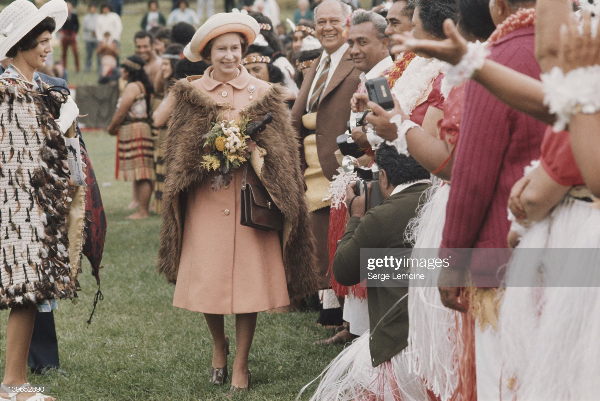 The Queen wearing a Māori cloak during her visit to New Zealand, 1977. Photograph: Serge Lemoine/Getty Images