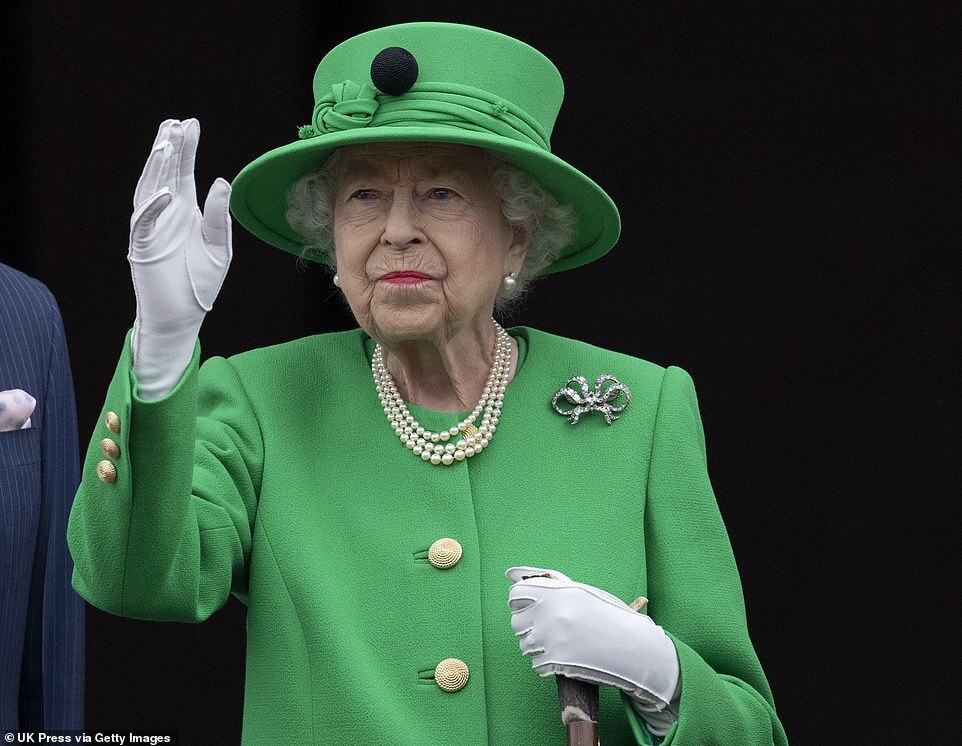 Her Majesty stands on the Buckingham Palace balcony on the final day of her Platinum Jubilee celebrations in early June