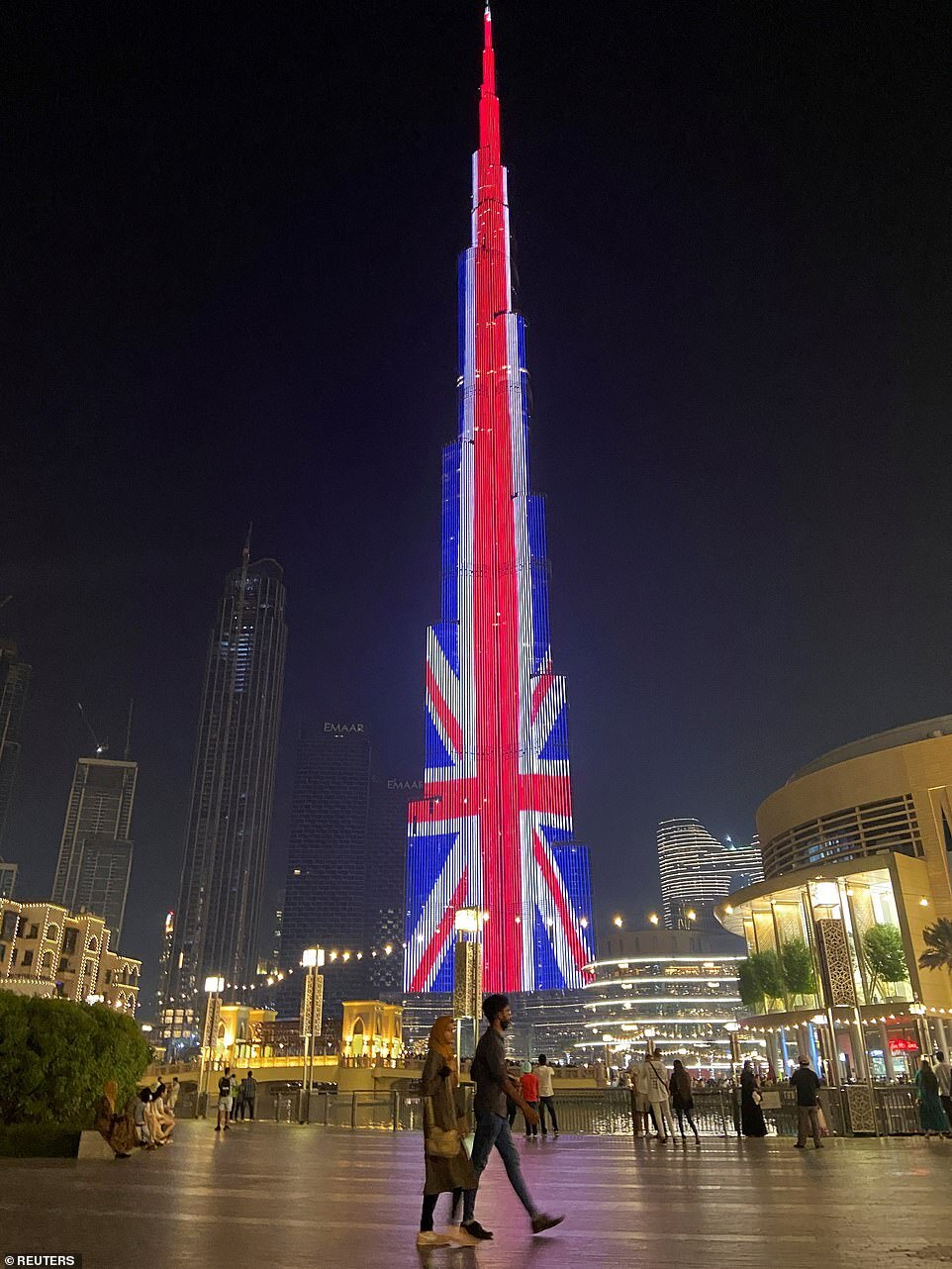 The world's tallest building, the Burj Khalifa, in Dubai, was lit up with the Union Jack last night as the United Arab Emirates paid tribute the Queen following her death