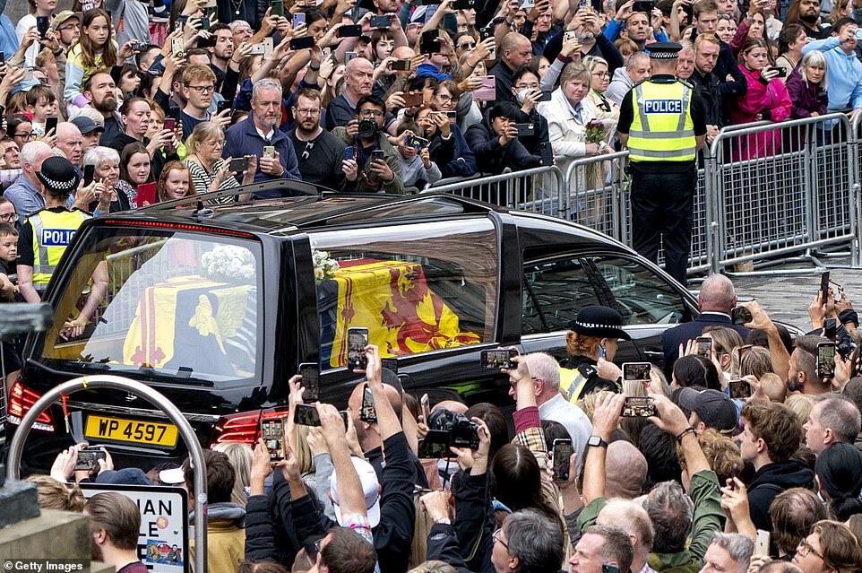 Tens of thousands of people lined the streets of the Scottish capital as her cortege arrived, while family members such as Prince Andrew, Princess Anne and the Earl and Countess of Wessex were present as it drove into the city.