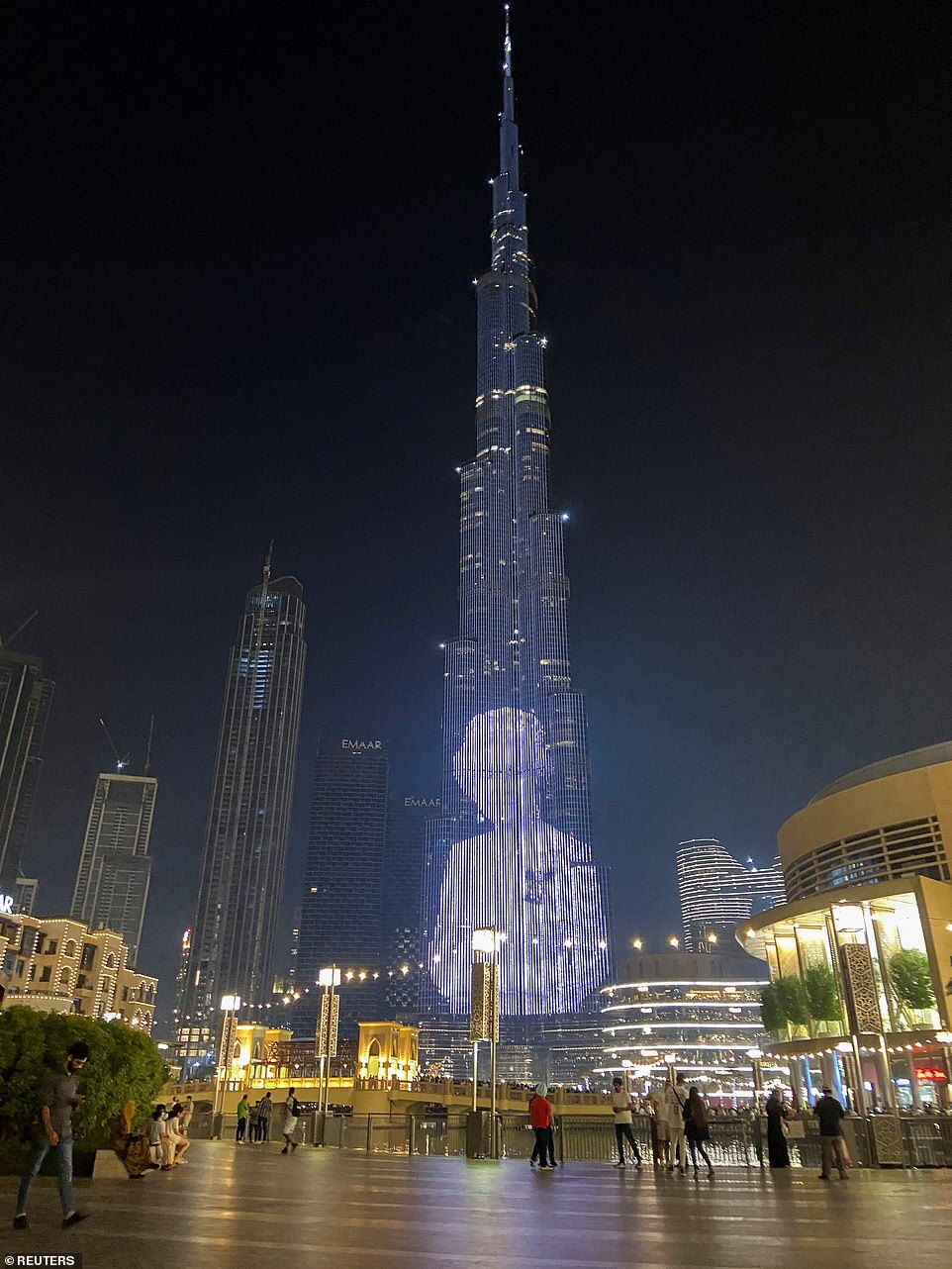 The 2,700ft tall building was also lit up with a giant portrait of Her Majesty as it commemorated the monarch, who died on Thursday