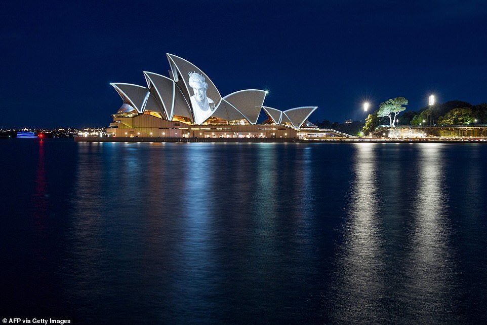 The Sydney Opera House in Australia was also lit up with an image of Her Majesty, who was also the country's head of state for 70 years