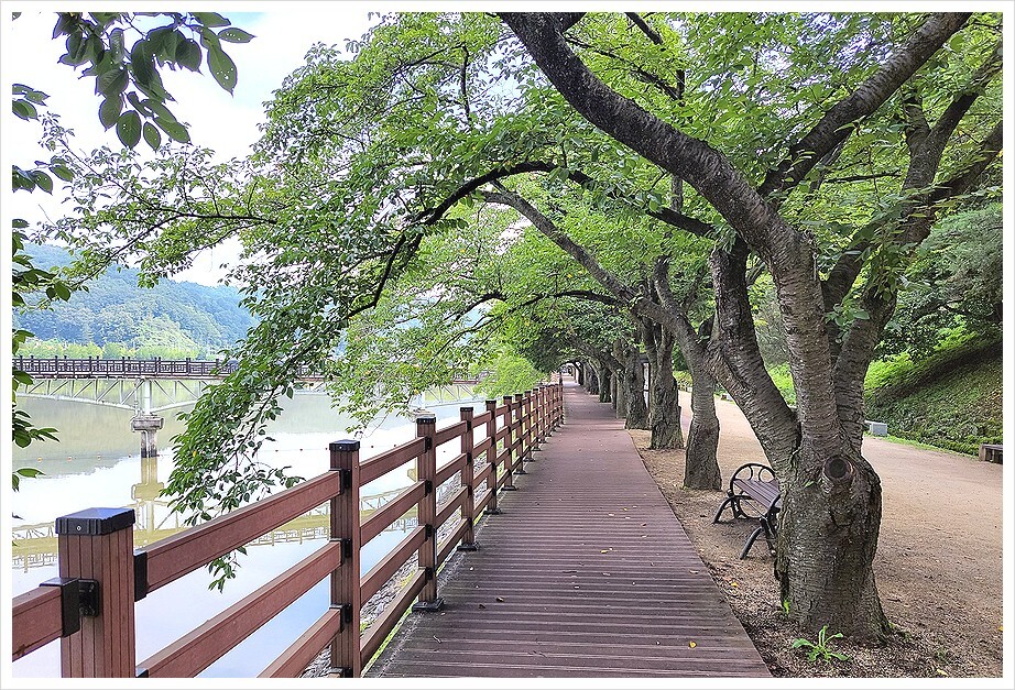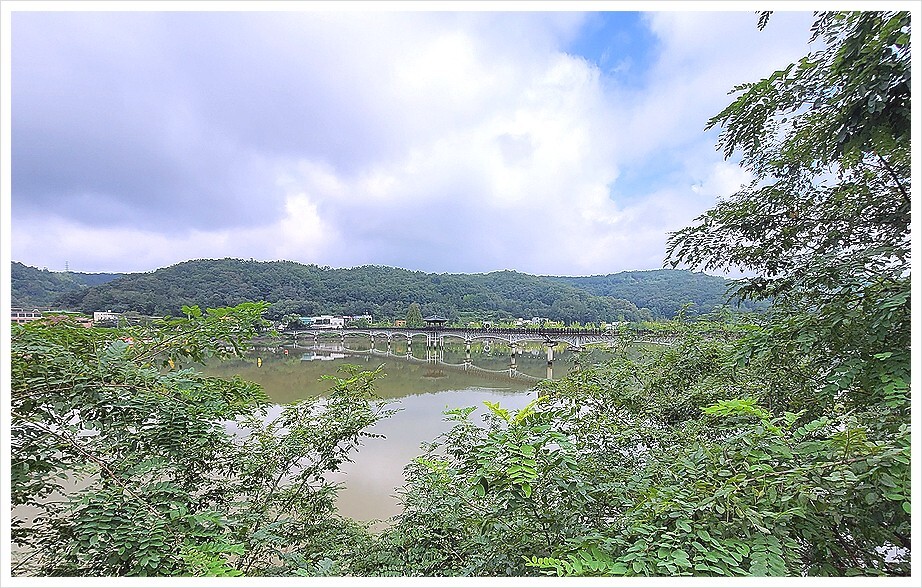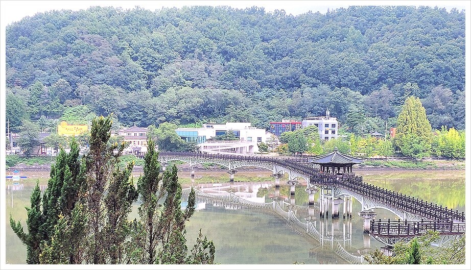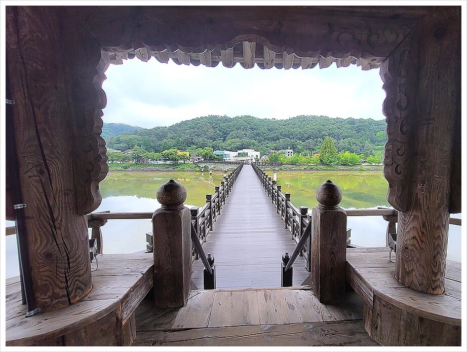 월영교(月映橋)는 나무다리로 2003년에 개통되었으며, 교각 총 길이는 387m이다.