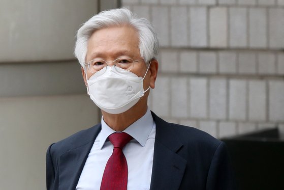 "문재인은 공산주의자"라고 발언해 문 대통령의 명예를 훼손한 혐의를 받는 고영주 전 방송문화진흥회 이사장이 지난 2020년 6월 서울 서초구 서울중앙지방법원에서 열린 항소심 공판에 출석하고 있다. 뉴스1