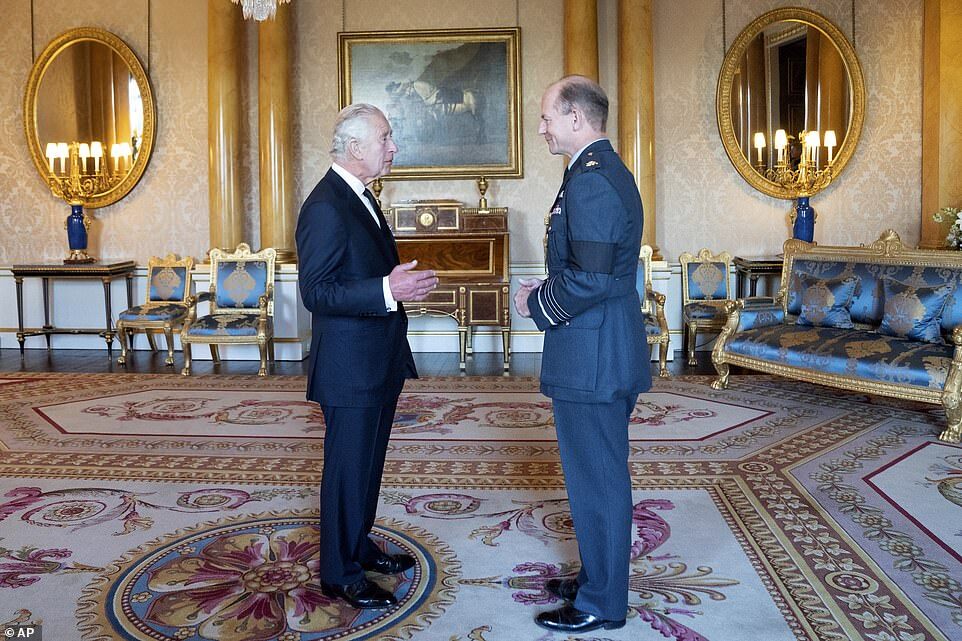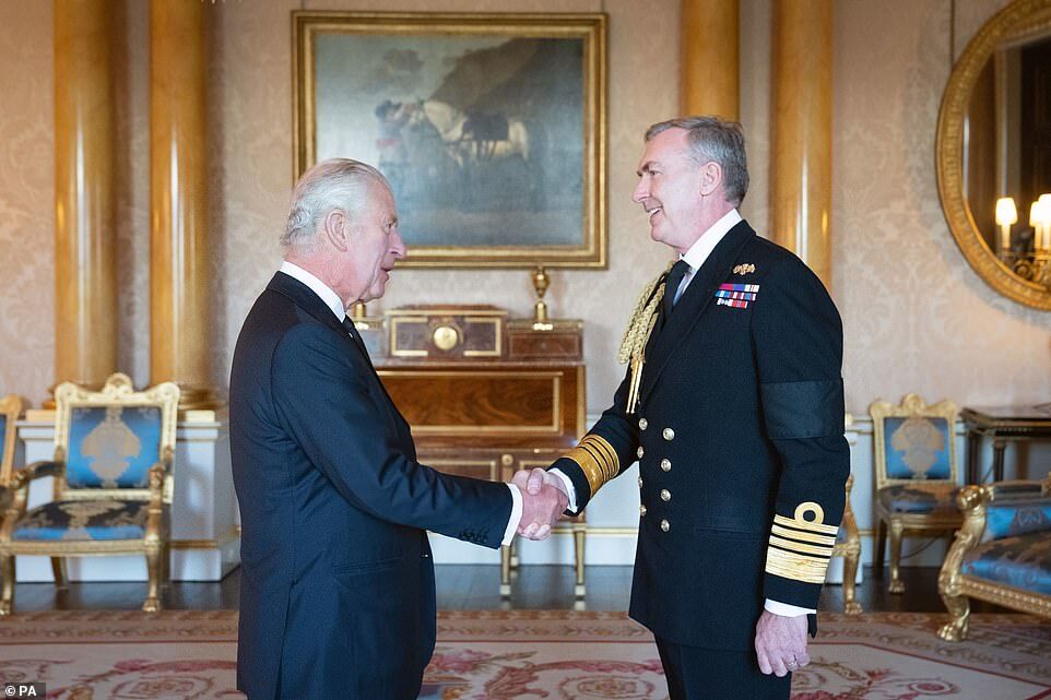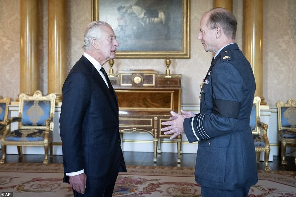 Additionally, the new King met with Chief Air Marshal Sir Mike Wigston, pictured, the senior officer in the Royal Air Force. He has served as Chief of the Air Staff since July 2019