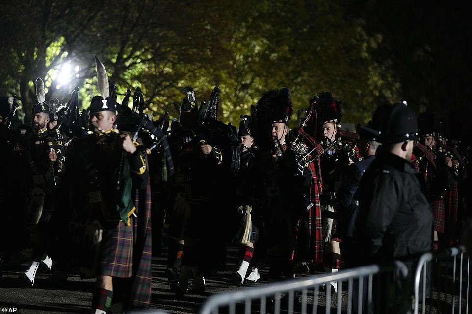 Bagpipes are played as military personnel take part in final drills along the Long Walk