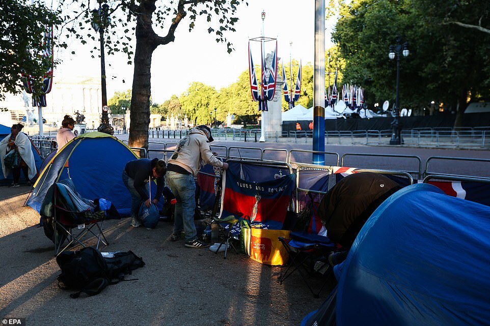 Karen Hare, 59, from Upminster, Essex, said: 'We've been joking that we're queuing up for the queue! As if that isn't already long enough! 'I'm annoyed at my husband because I wanted to leave the house at 3am and he talked me out of it only to change his mind at 9am.