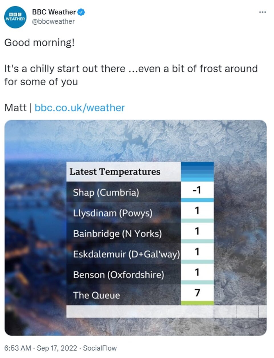 - The BBC introduced a specific weather forecast for the queue- revealing it was around 7C this morning