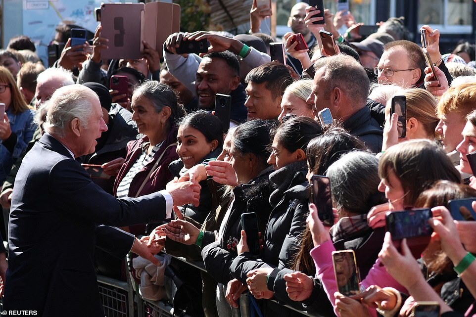 King Charles greets people queueing to pay their respects to Queen Elizabeth following her death