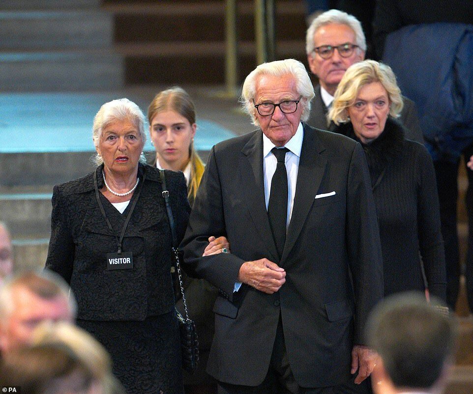 A fellow mourner said: 'He was chatting happily to people around him about the times he met the Queen. I think we were all stunned to see him here given how famous he is. He had his cap pulled down so I think he was trying to keep a low profile.