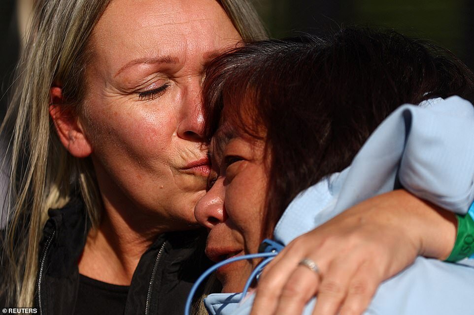 Mourners console one another in Westminster Hall as they pay a final tribute to Queen Elizabeth II