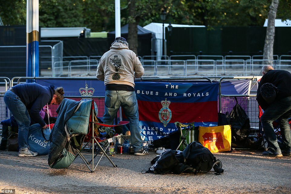 Tatie Kirst, 38, of Canada Water in south-east London, a project manager who had just joined the queue in Southwark Park, said: 'Well, it's a journey right? I think I'm prepared, I brought my good coat, I have a stool if I need to sit, I'm getting food and water, and we're going to walk the way. I think there is always a question, Is it worth it? Can I make it? And hopefully, yes. I wanted to be part of this, pay my respect to the Queen.'