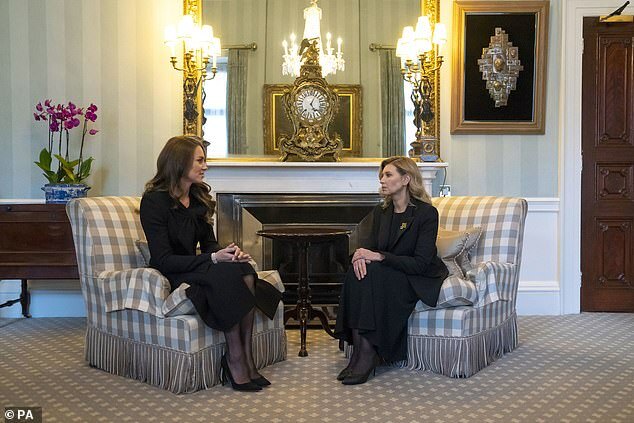 Kate meets Ukraine's First Lady: President Zelensky's wife Olena sits down with Princess of Wales at Buckingham Palace before seeing Queen lie in state after travelling to UK from war torn homeland