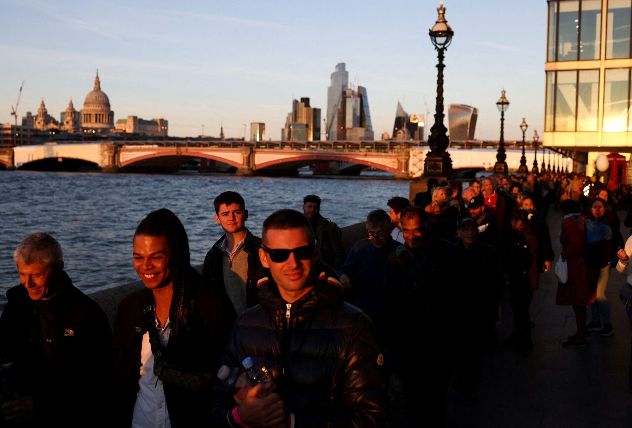 17일(현지 시각) 엘리자베스 여왕의 관에 참배하려는 조문객들이 줄을 서 있다./로이터 연합뉴스