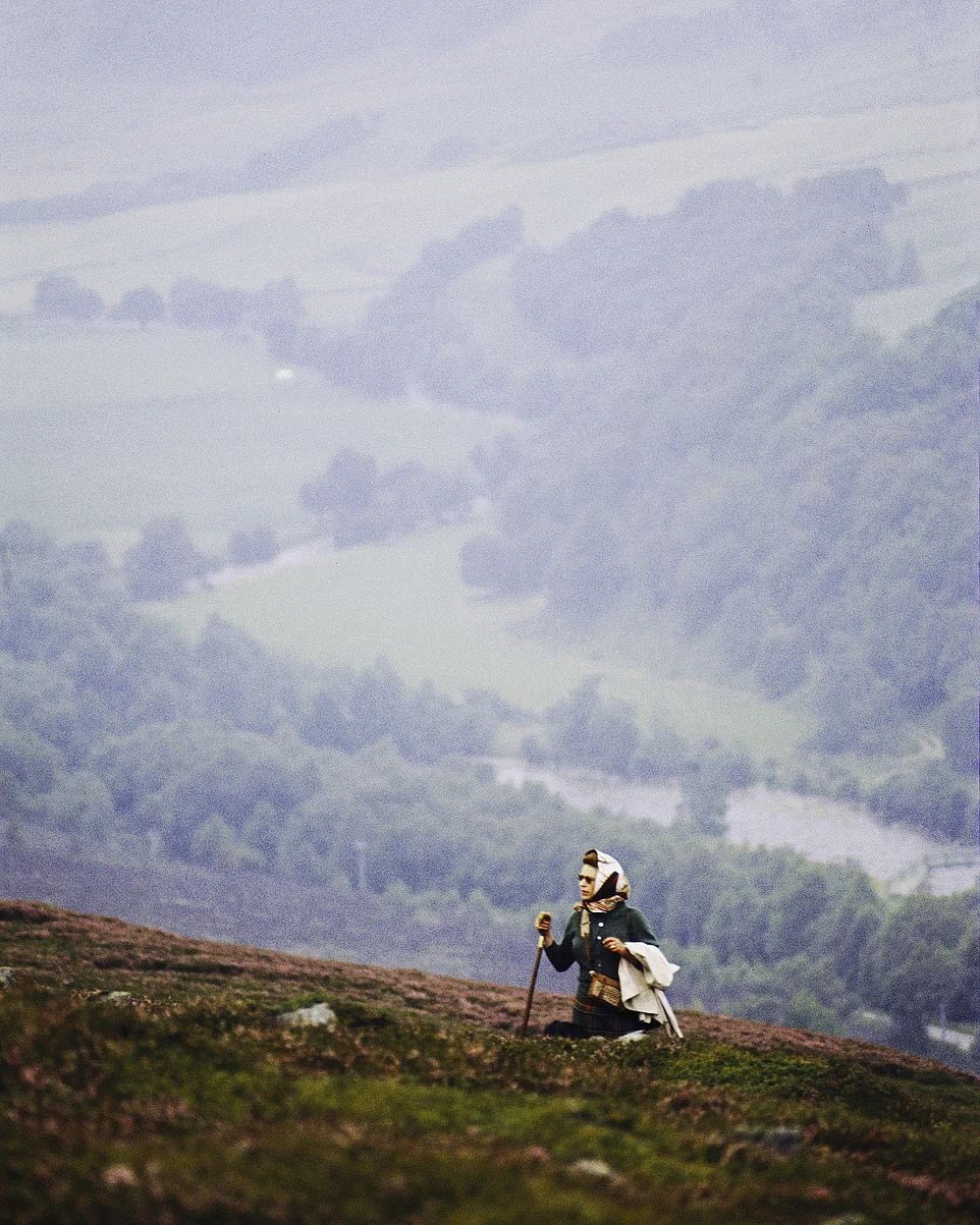 The Royal Family yesterday released a never-before-seen image showing Queen Elizabeth II hiking in the heather at Balmoral in Scotland