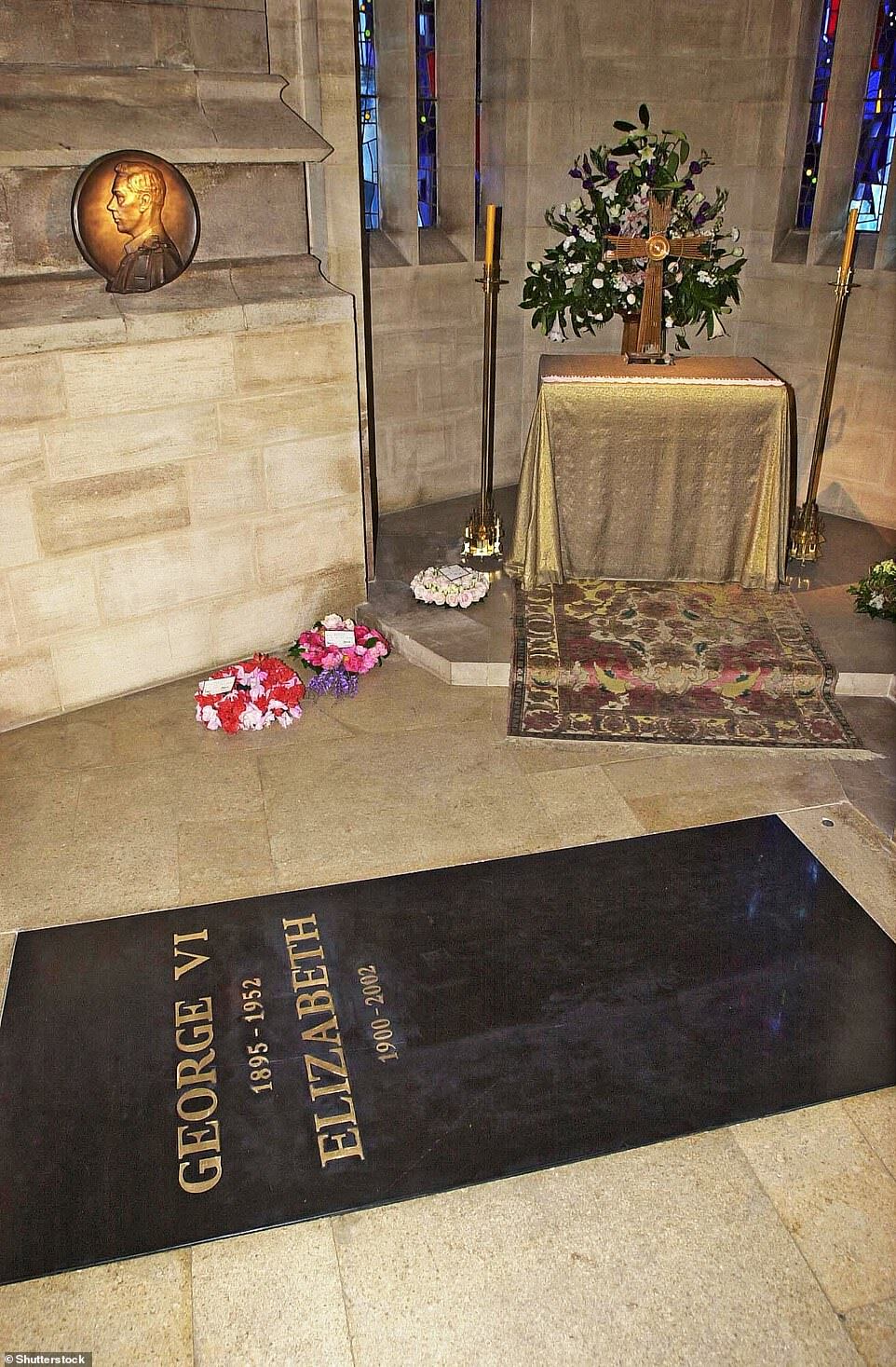 Her Majesty was interred alongside her husband, Prince Philip, and her parents King George VI and Queen Elizabeth, the Queen Mother. Pictured: A stone in the George VI Memorial Chapel at St George's Chapel in Windsor, where the Queen Mother was laid to rest in 2002