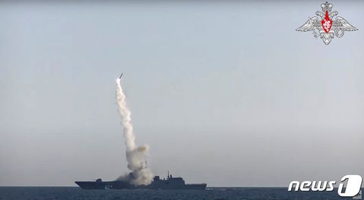 2019년 7월19일(현지시간) '지르콘' 극초음속 순항 미사일이 백해의 러시아군 유도미사일 호위함에서 발사되고 있다. 2019.07.19/뉴스1 ⓒ 로이터=뉴스1 ⓒ News1 김민수 기자