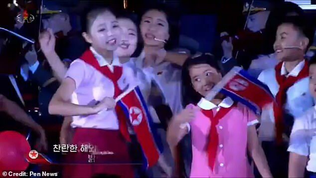 The girl (right) was one of several children performing a song for Kim Jong-un and his wife, Ri Sol-ju, but something about her in particular stood out to experts