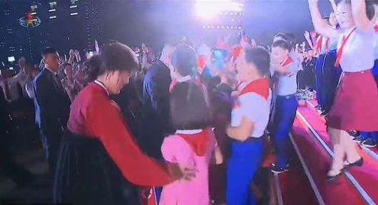김 위원장 부부 역시 집중해서 공연을 관람하는 모습이 카메라에 담겼다. 김 위원장의 동생인 김여정 노동장 부부장이 손뼉을 치다 감격에 겨워 눈물을 훔치는 듯한 모습이 담기기도 했다.
