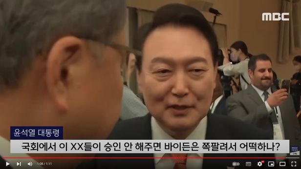 이 엠바고는 그날 오전 9시 39분 해제됐고, MBC는 이 영상을 1분12초짜리로 잘라 그날 오전 10시 7분 유튜브를 통해 처음으로 대중에게 공개했다. 제목은 “이 ××들이 승인 안 해주면 바이든은 쪽팔려서 어떡하나”였다.
