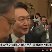 작성자의 필명은 ‘그겨울의OO’. 그는 ‘윤석열 대형 사고 쳤네요’라는 제목 아래 “조금 전에 현지에서 행사 끝나고 나오는 길에 미 의회와 바이든을 모욕하는 발언이 우리 취재단 영상에 잡혔다고 한다. 상상도 못할 워딩”이라고 했다. 이어 “대통령실에서 보도 막으려고 하는데 못 막는 분위기라고 한다. 곧 보도 나온다”고 했다.