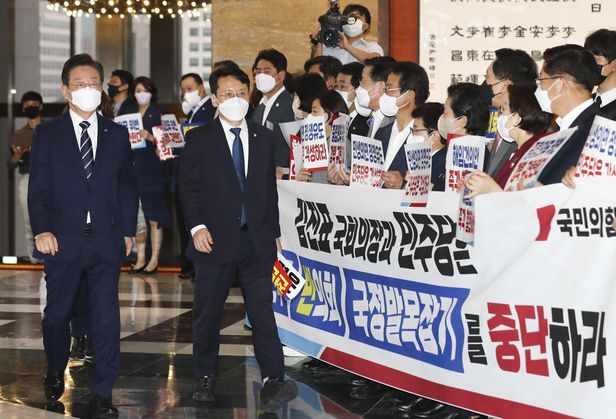 국민의힘은 이날 오전부터 4차례나 의원총회를 열며 대응 방안을 모색했지만 뾰족한 수가 없었다. 주호영 원내대표는 “실질적으로 대선 불복 행위나 다름없다”며 “내일(30일) 오전 중으로 국회의장 사퇴 권고안을 낼 계획”이라고 했다.
