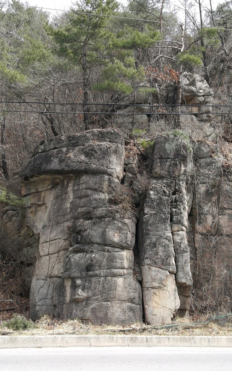 사인암을 끼고 흐르는 남조천 물길의 상류에 있는 운선구곡의 도광벽(道光壁);.