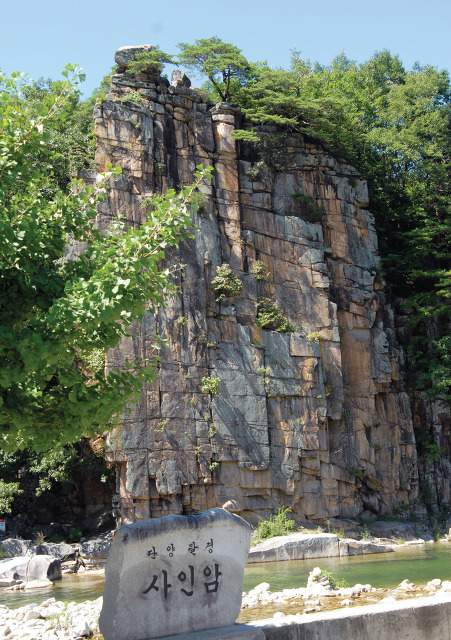 단양을 대표하는 명승 ‘단양팔경’이야 모르는 이가 있을까만, 조선 영조 때 참판을 지낸 오대익이 설정했다는 단양 ‘운선구곡(雲仙九谷)’의 이름은 낯설다. 운선(雲仙)은 ‘구름 속의 신선’이다. 운선구곡의 아홉 굽이는 단양 대강면 남조천, 그러니까 단양 팔경의 사인암을 끼고 흘러내리는 물길을 따라 이어진다. 높이 50m의 거대한 수직석벽으로 늠름하게 서 있는 사인암은 단양팔경의 ‘제4경’이자 운선구곡의 ‘제7곡’이기도 하다.
