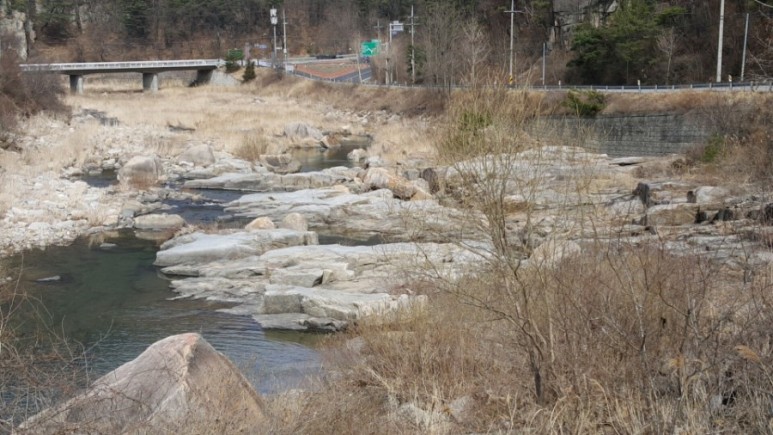 운선구곡 제2곡 황정동. 모래속에 묻혔었는데 물길이 바뀌면서 다시 드러났다.