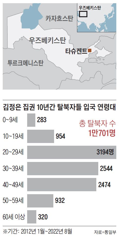 중앙아시아 우즈베키스탄 수도 타슈켄트의 북한 식당 여종업원 5명 전원이 지난 5월부터 4개월간 3차례에 걸쳐 식당을 탈출해 한국으로 들어온 것으로 30일 알려졌다. 이들은 모두 20대 초반 MZ 세대(1980~2000년대 출생)인 것으로 파악됐다.