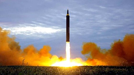 사진은 2017년 9월 노동신문에 공개된 중장거리전략탄도미사일 화성-12형 발사장면. 뉴스1