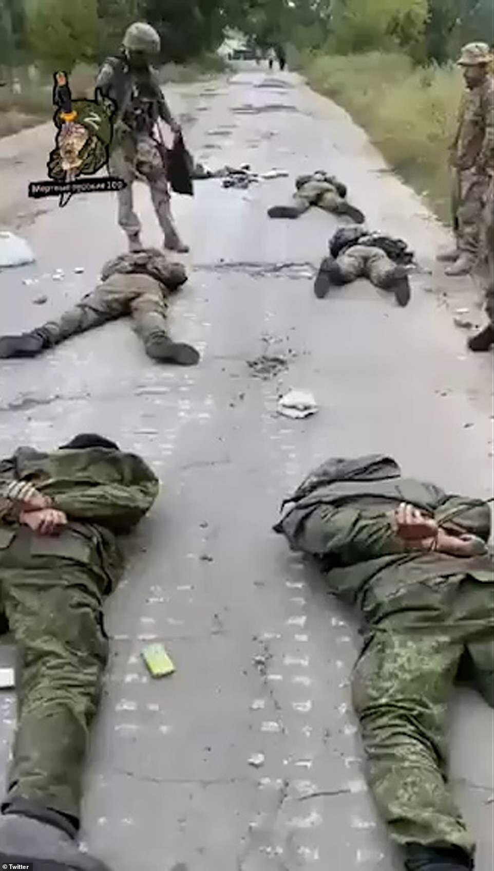 Videos from social media showed Russian troops lying face down in front of Ukrainian forces in Kharkiv