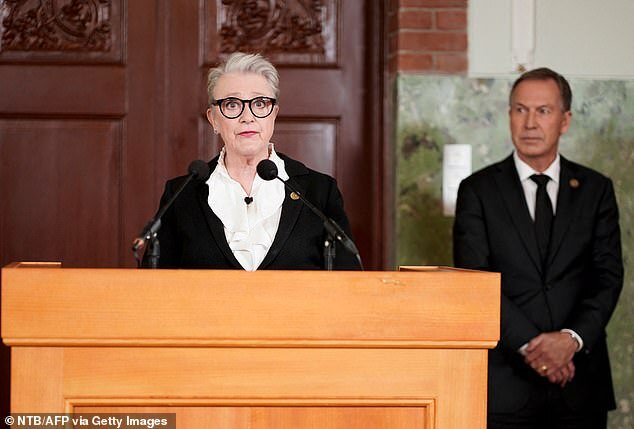 Berit Reiss-Andersen (pictured speaking on Friday), chair of the Norwegian Nobel Committee, said the judges wanted to honour 'three outstanding champions of human rights, democracy and peaceful coexistence in the neighbour countries Belarus, Russia and Ukraine'