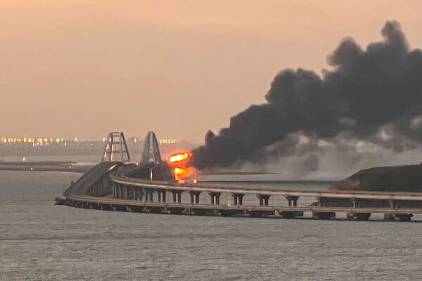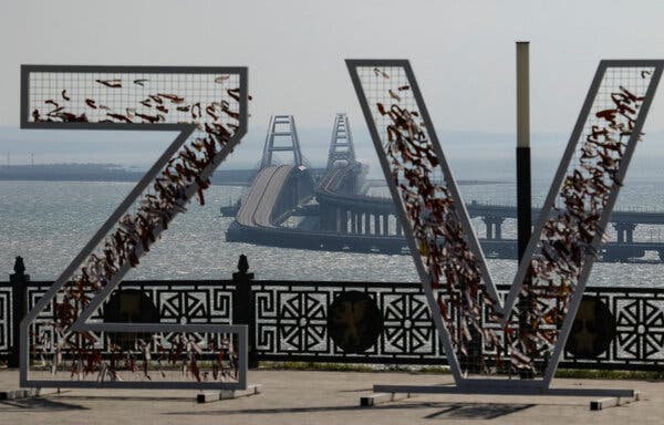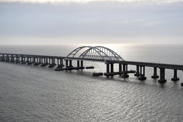 The 12-mile Kerch Strait Bridge linking the Crimean Peninsula to Russia, which was badly damaged by an explosion on Saturday, is not just the primary supply route for Moscow’s forces fighting in southern Ukraine. It is also deeply symbolic for President Vladimir V. Putin of Russia, a pillar of his disputed claim to the Crimean Peninsula since the completion of the twin road spans in 2018.