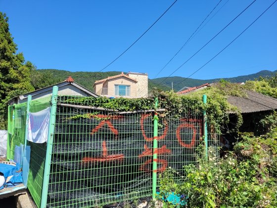 생가는 마당으로 들어가는 출입구가 막혀 있었다. 높이 2m, 길이 8m의 ‘ㄴ’자로 꺾인 녹색 그물망 형태 철제 펜스가 울타리마냥 출입구를 둘러싸고 있었다. 펜스에는 내부가 잘 보이지 않게 검은색 비닐재질 가림막도 처져 있었다. 생가에 사는 50대 마을 주민이 사생활 침해를 호소하면서 취한 조치다.