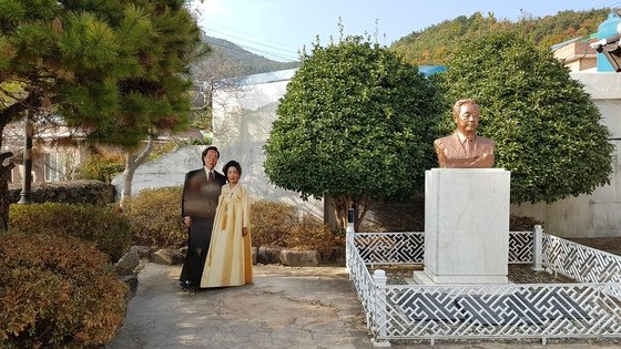 2017년 11월 경남 거제시 장목면 대계마을의 김영삼 대통령 생가에 있는 김 전 대통령의 흉상과 대통령 내외의 실물 크기 사진. 김진국 기자
