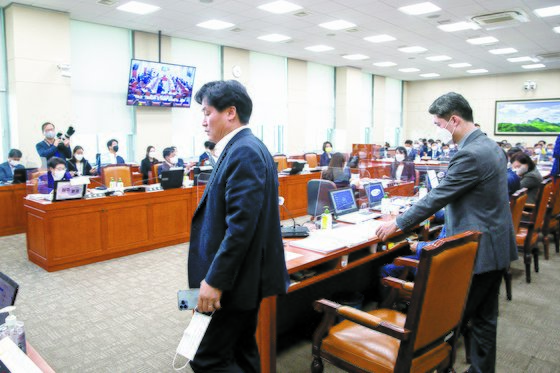 이후 김 위원장은 국감장을 떠났다. 여당 의원들은 전 위원장의 조치에 고성으로 항의하다 국감장에서 나갔다.