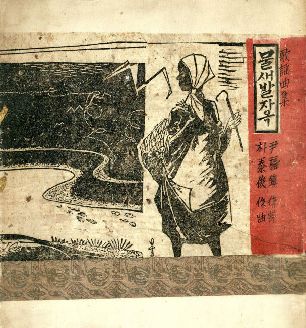 서양화가 이인성이 표지를 그린 윤복진과 박태준의 동요곡집 '물새발자욱'. <대구문학관 제공>
