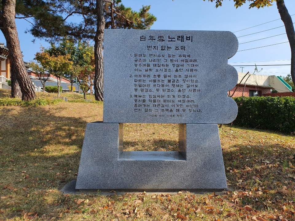 그 누가 이 낡은 건물을 험한 시대에 남겨진 민족의 절창 '나그네 설움'과 '번지 없는 주막' 단 두 곡으로 한 시대를 감동적으로 풍미했던 가수 백년설의 생가라고 인정할 것인가? 거의 다 쓰러져 가는 백년설 생가의 마당을 서성이며 나의 가슴은 너무나 비감한 심정에 젖어 들었습니다. 바로 이러한 광경이 상처와 유린으로 얼룩진 한국현대사의 처참한 얼굴이자 본모습이라는 생각에 다다르자 기어이 발끝에 눈물방울이 떨어졌습니다.