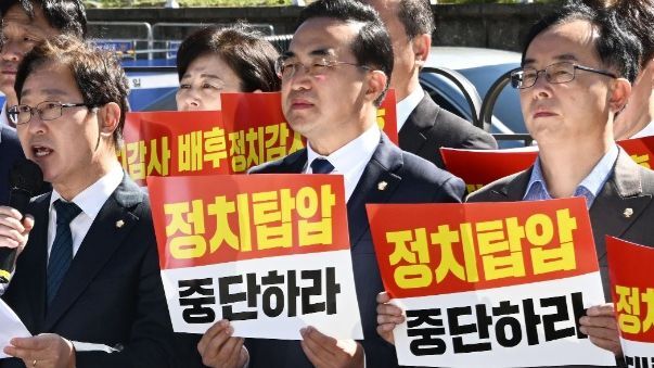 민주당 의원들은 이날 정치’탑’압이라는 오타가 적힌 피켓을 들고 시위에 나섰다. 국민의힘 일부 의원들은 이와 관련 “국어탄압을 중단하라”고 비꼬았다.