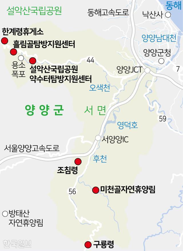 양양 서면 여행 지도. 그래픽=김문중 선임기자