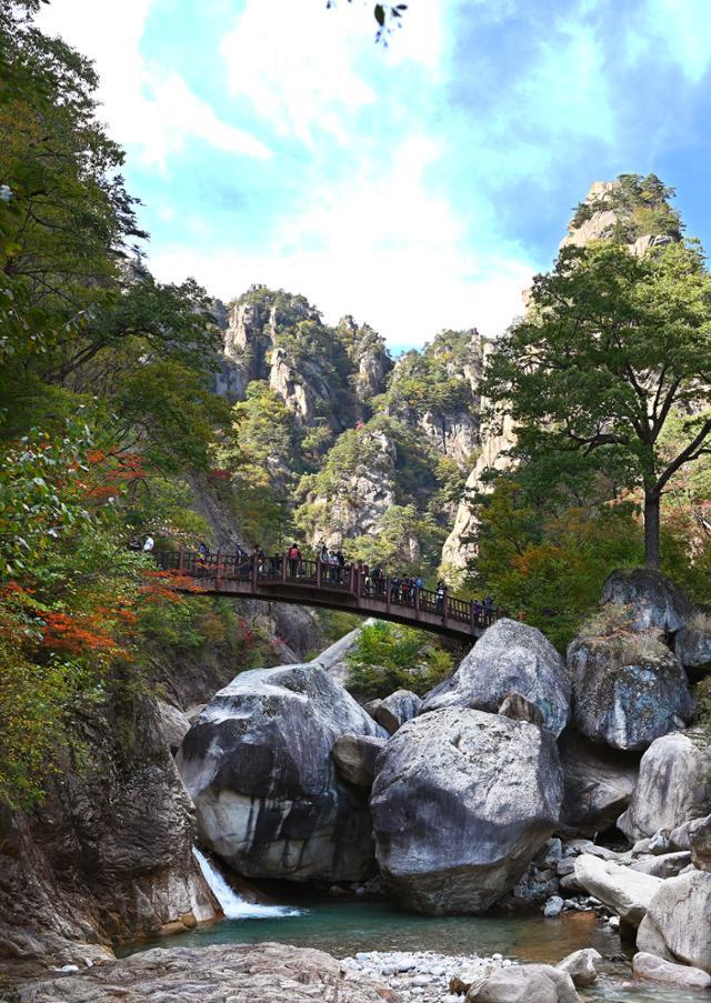<설악산 흘림골 코스는 7년 만에 개방한 탐방로. 10월 13일 풍경. 주전골까지 이어지는 약 3.6km, 3시간 정도 소요.