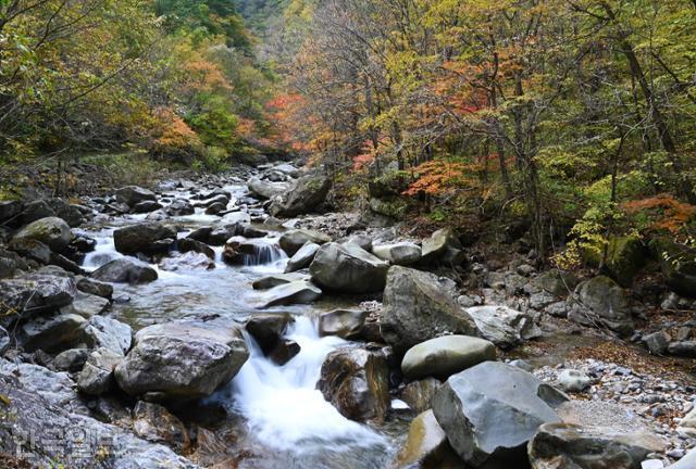 14일 미천골 상류로 갈수록 단풍이 더욱 짙어지고 있었다.